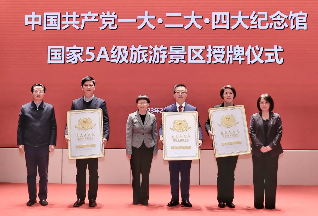 在各方共同努力下,经过精心筹备、积极创建和现场评审,在建党100周年之际,文化和旅游部发布《关于确定上海市中国共产党一大·二大·四大纪念馆景区为国家5A级旅游景区的公告》,确定中国共产党一大·二大·四大纪念馆成功创建成为国家5A级旅游景区,这也是本市第4个国家5A级旅游景区。
