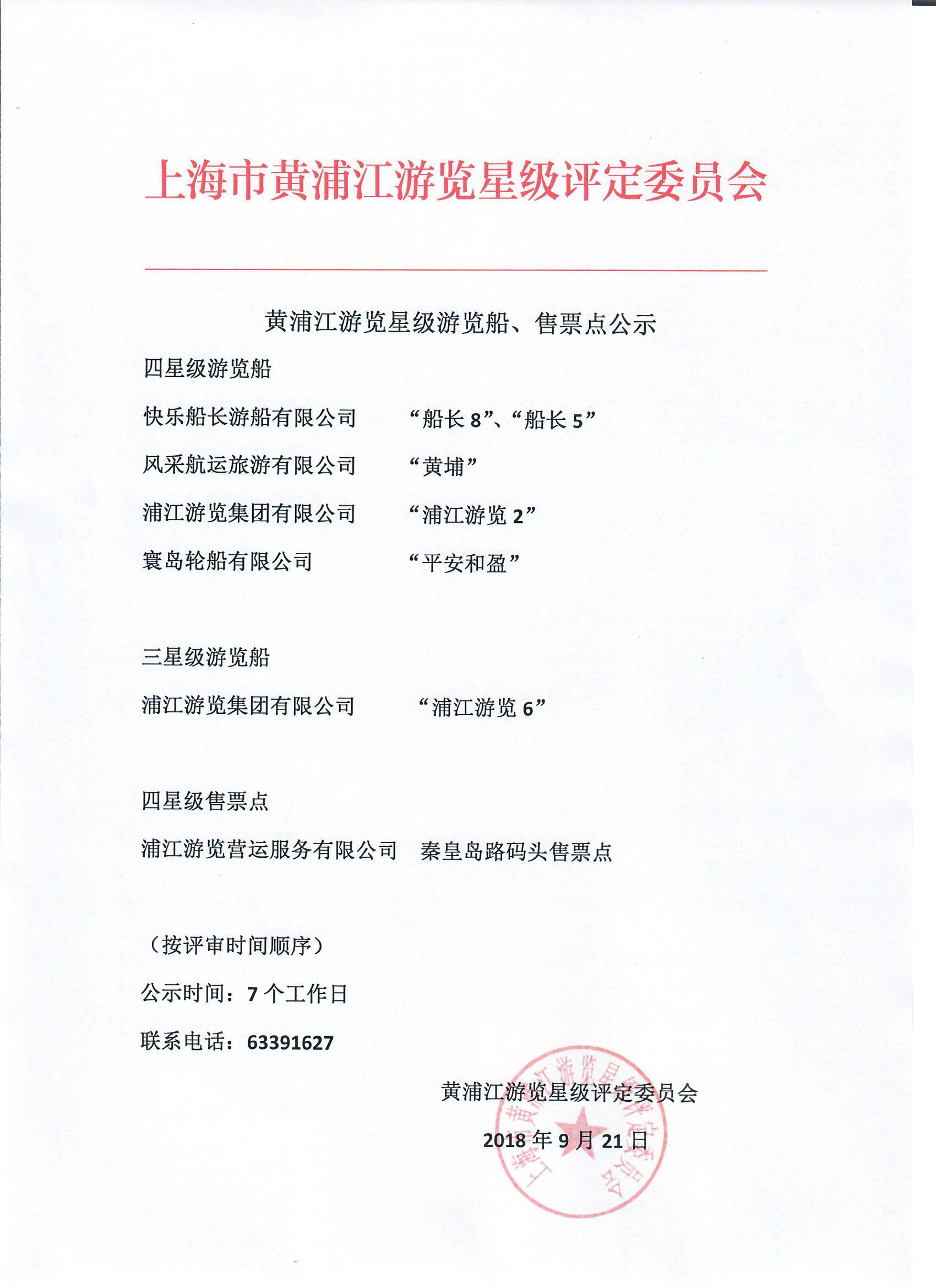 黄浦江游览星级游览船、售票点公示