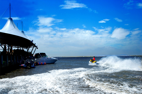 碧海金沙是国家AAAA级旅游景区。碧海金沙水上乐园拥有68万平方米的海水面积,7万平方米人工铺设的金色沙滩和4万平方米的滨海绿化带。游人可在碧海中游泳,在沙滩上晒日光浴,尽情享受碧海、沙滩、阳光、清新空气和清凉的绿色。南面海水蔚蓝,深水区白帆点点,可航行非动力帆船。泳场区西边是151万平方米的海上运动区,设有动力艇码头、非动力艇码头和摩托艇码头,可容纳20艘小型游艇停泊。海湾旅游区滨海临江,鸥鸟飞翔,一派异国滨海风情。